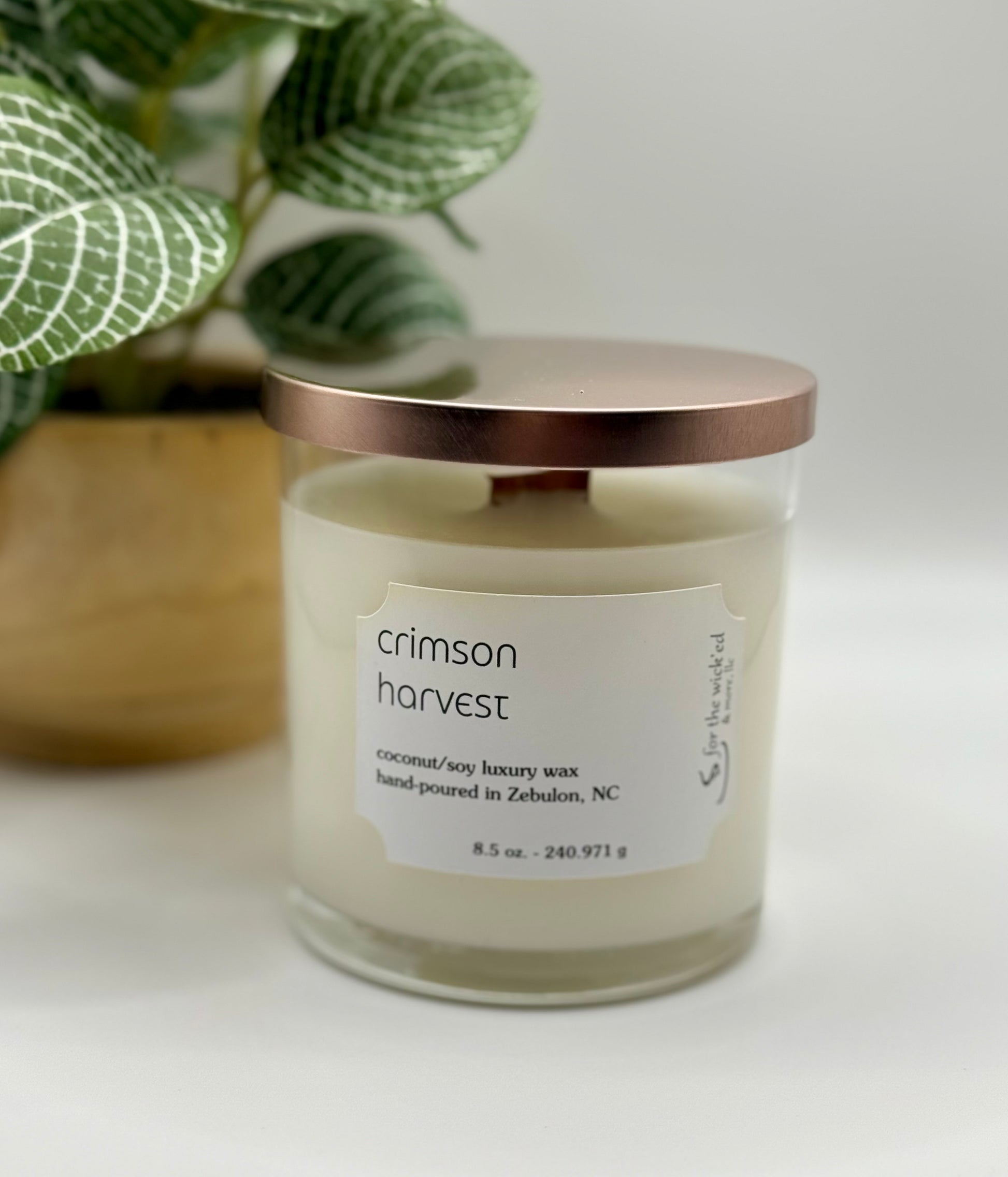 Experience the cozy ambiance of autumn with our 8.5 oz clear glass candle featuring authentic fall scents. Our clear glass candle features a natural wood wick, providing a clean and distinctive crackling sound that enhances the ambiance. Offered in a variety of expertly blended scents, it delivers a consistent and balanced fragrance that elevates any room. The clear glass container showcases the candle's elegant simplicity while allowing easy monitoring of wax levels. Perfect for those seeking a sophisticated sensory experience with both visual and aromatic appeal.